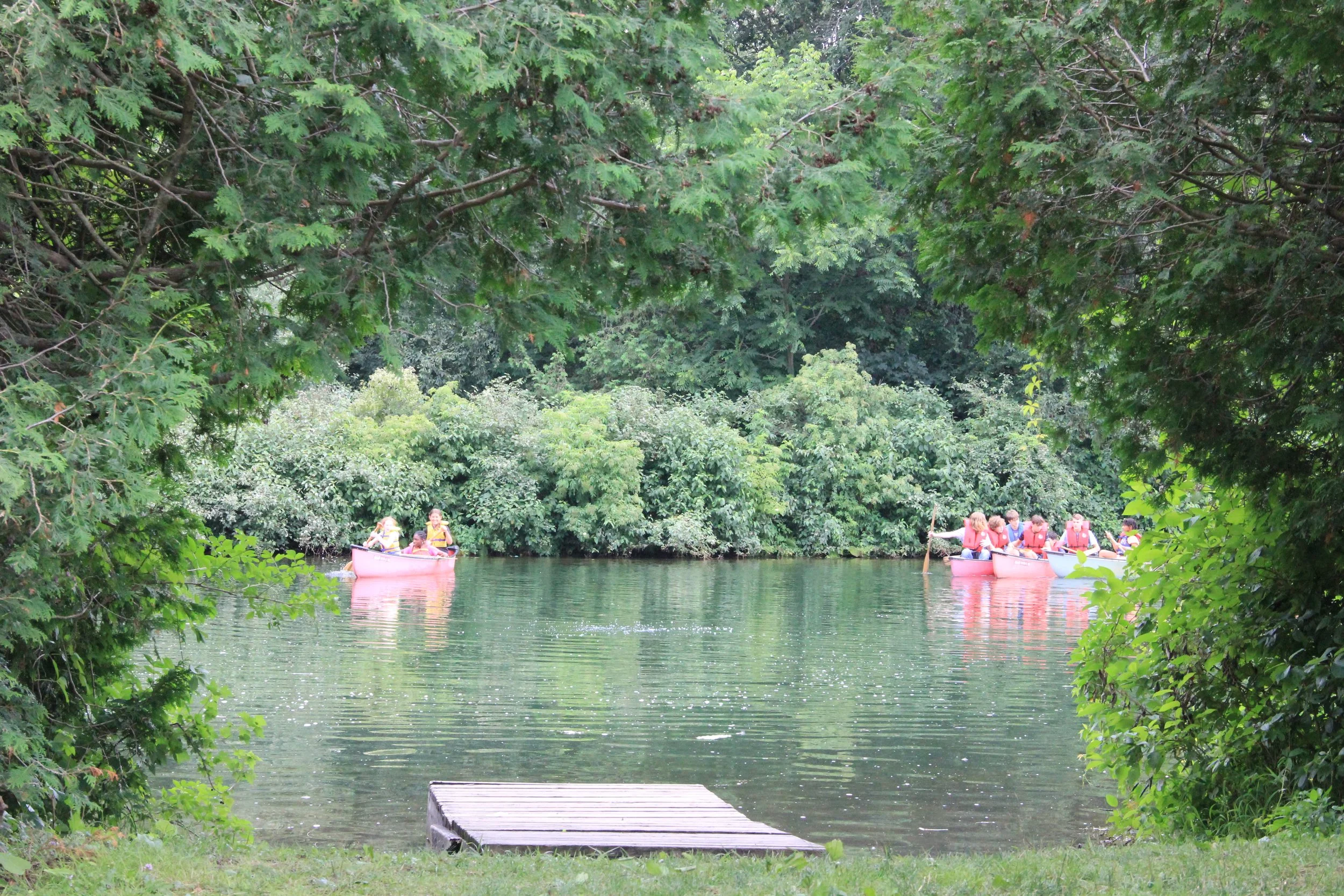 In addition to multiple indoor spaces, the camp has outdoor trails, a spring fed pond, and a variety of sports and games.